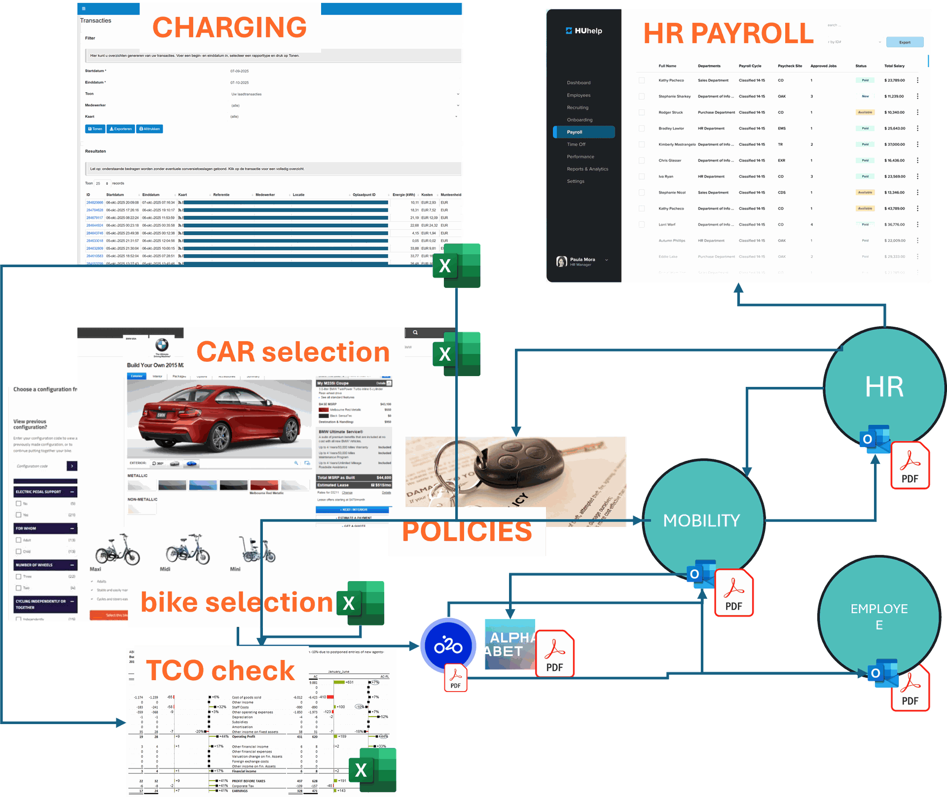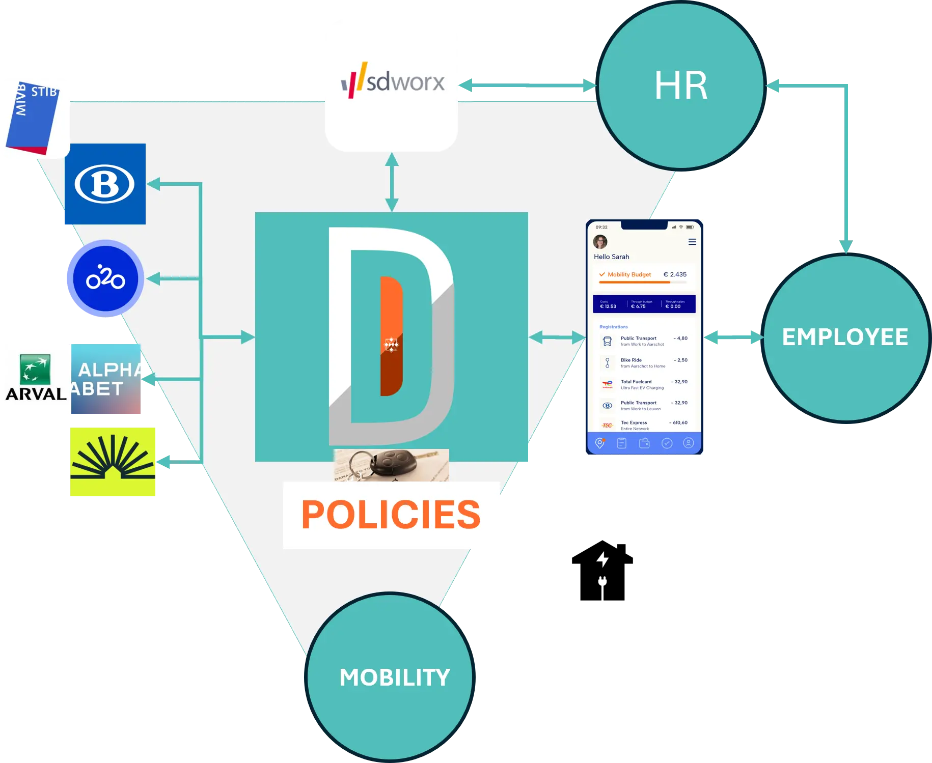 Mobiliteitskeuzes worden gekoppeld aan jouw loonverwerkingsprogramma om altijd over de juiste gegevens te bezitten van jouw mobiliteitsgebruikers