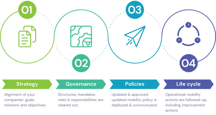 We doorlopen 4 grote stappen om jouw mobiliteitsbehoefte volledig te gaan afstemmen op de noden van jouw organisatie.